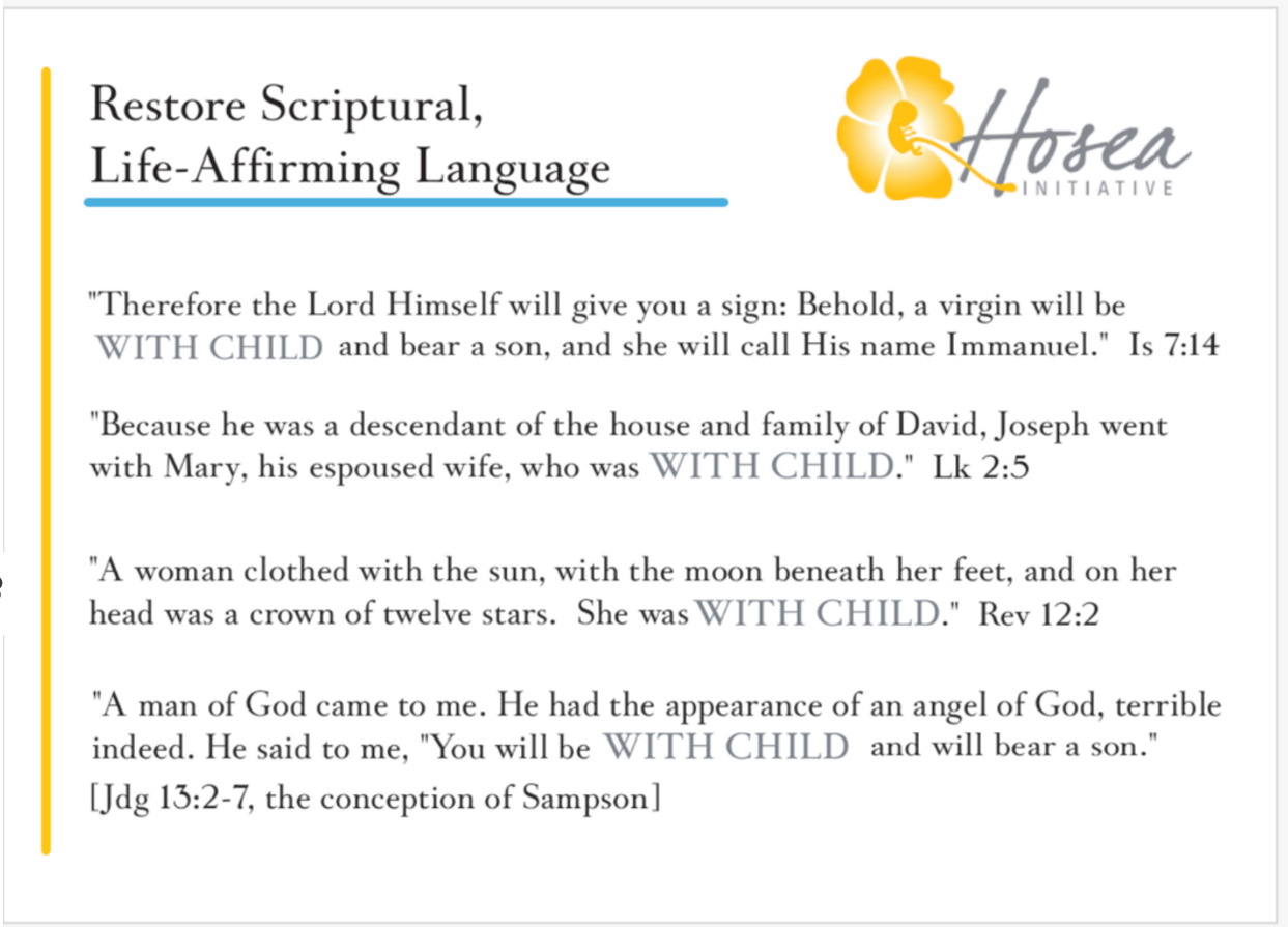 By using expressions like “with child” and “expecting a baby,” we acknowledge the presence of a new human life. and give dignity to the maternal relationship between mother and her infant.